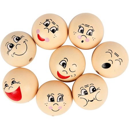 Köpfe aus Holz, fröhlich, D 12 mm, Hellbeige, 20 Stk/ 1 Pck