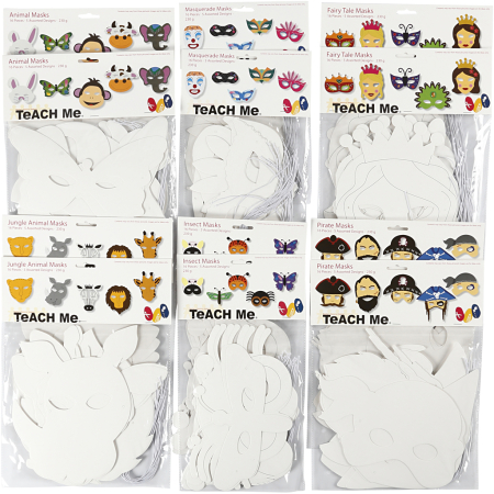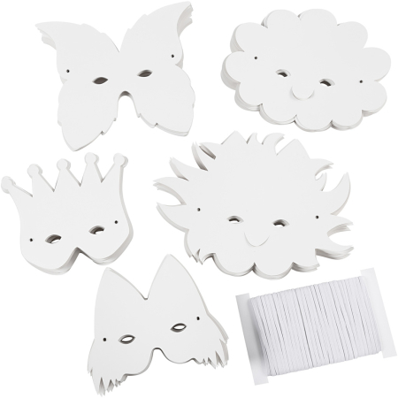 Märchen-Masken, H 13,5-25 cm, B 17-25 cm, 230 g, Weiß, 16 Stk/ 1 Pck