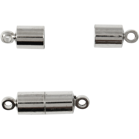 Magnetverschluss, L 15 mm, D 5 mm, Versilbert, 10 Stk/ 1 Pck
