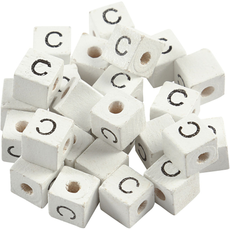 Buchstaben-Perle, C, Größe 8×8 mm, Lochgröße 3 mm, Weiß, 25 Stk/ 1 Pck