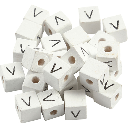 Buchstaben-Perle, V, Größe 8×8 mm, Lochgröße 3 mm, Weiß, 25 Stk/ 1 Pck