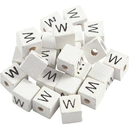 Buchstaben-Perle, W, Größe 8×8 mm, Lochgröße 3 mm, Weiß, 25 Stk/ 1 Pck