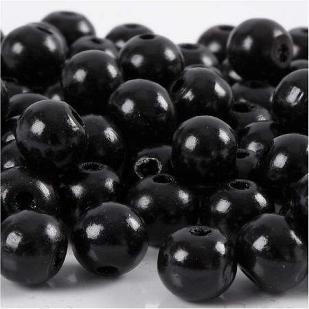 Holzperlen, D 10 mm, Lochgröße 3 mm, ca. 70 Stk, Schwarz, 20 g/ 1 Pck