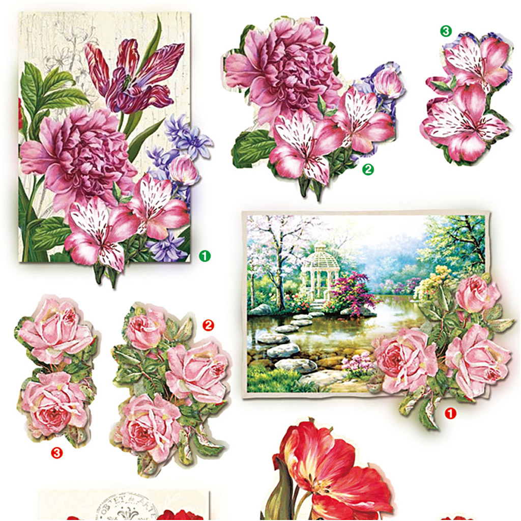 Design auf schwerem, matten Seidenpapier mit Glitzerlack – kann mehrlagig verarbeitet werden, um einen 3D-Effekt zu kreieren. Packung mit 4 Blatt in 4 verschiedenen Varianten und Größen – alle perforiert zum einfach Trennen