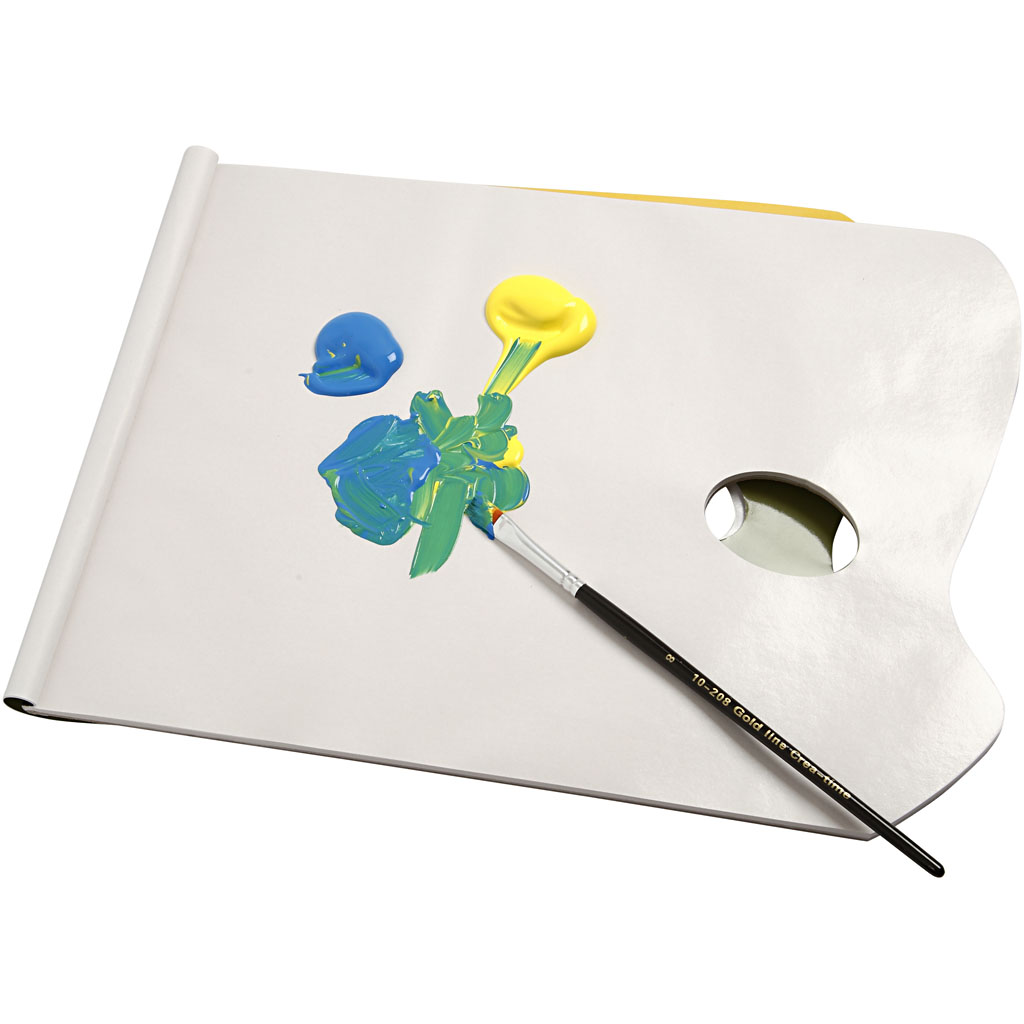 Palette als Papierblock mit 40 Blättern Wachspapier und Daumenlöchern. Einfach nach Gebrauch abreißen