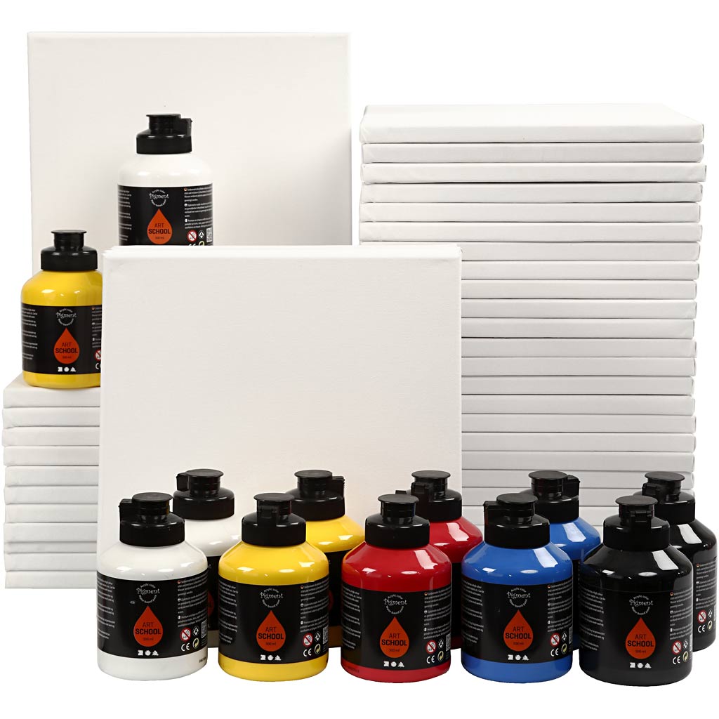Sortiment Acrylfarben auf Wasserbasis – voll deckend, halbglänzend, pastöse Konsistenz, mittlere Lichtbeständigkeit