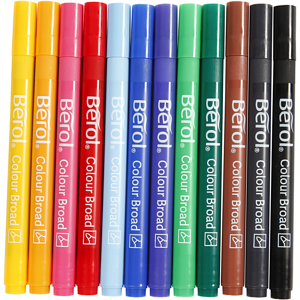 Berol Colour Broad Filzstifte, D 10 mm, Strichstärke 1-1,7 mm, Sortierte Farben, 12 Stk/ 1 Pck
