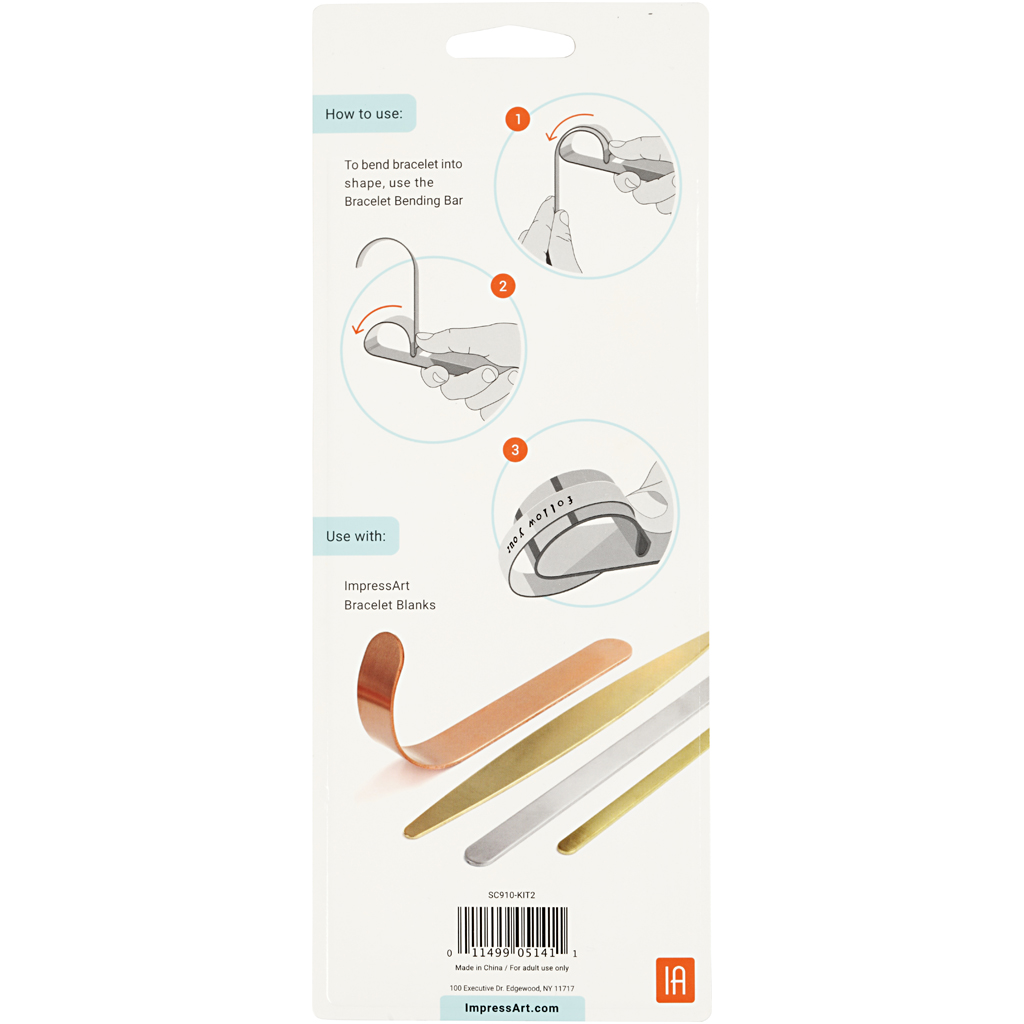 Biegegerät und Set aus Metall-Bändern mit runden Enden. Mit dem Set lassen sich 8 Armreifen anfertigen. P. mit 1 Biegegerät und 7 Metall-Bändern