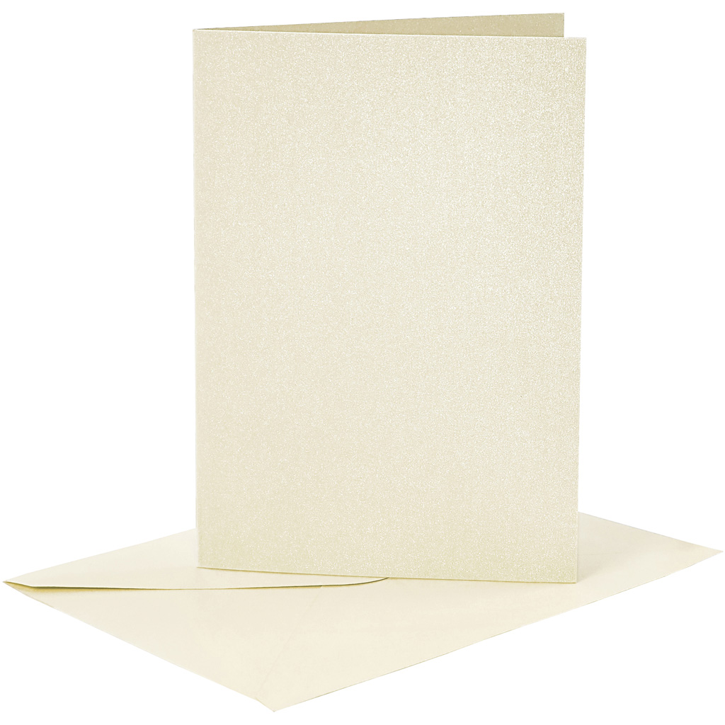 Briefkarte und Briefumschlag, Kartengröße 10,5x15 cm, Umschlaggröße 11,5x16,5 cm, Perlmutt, 120+210 g, Naturweiß, 4 Set/ 1 Pck