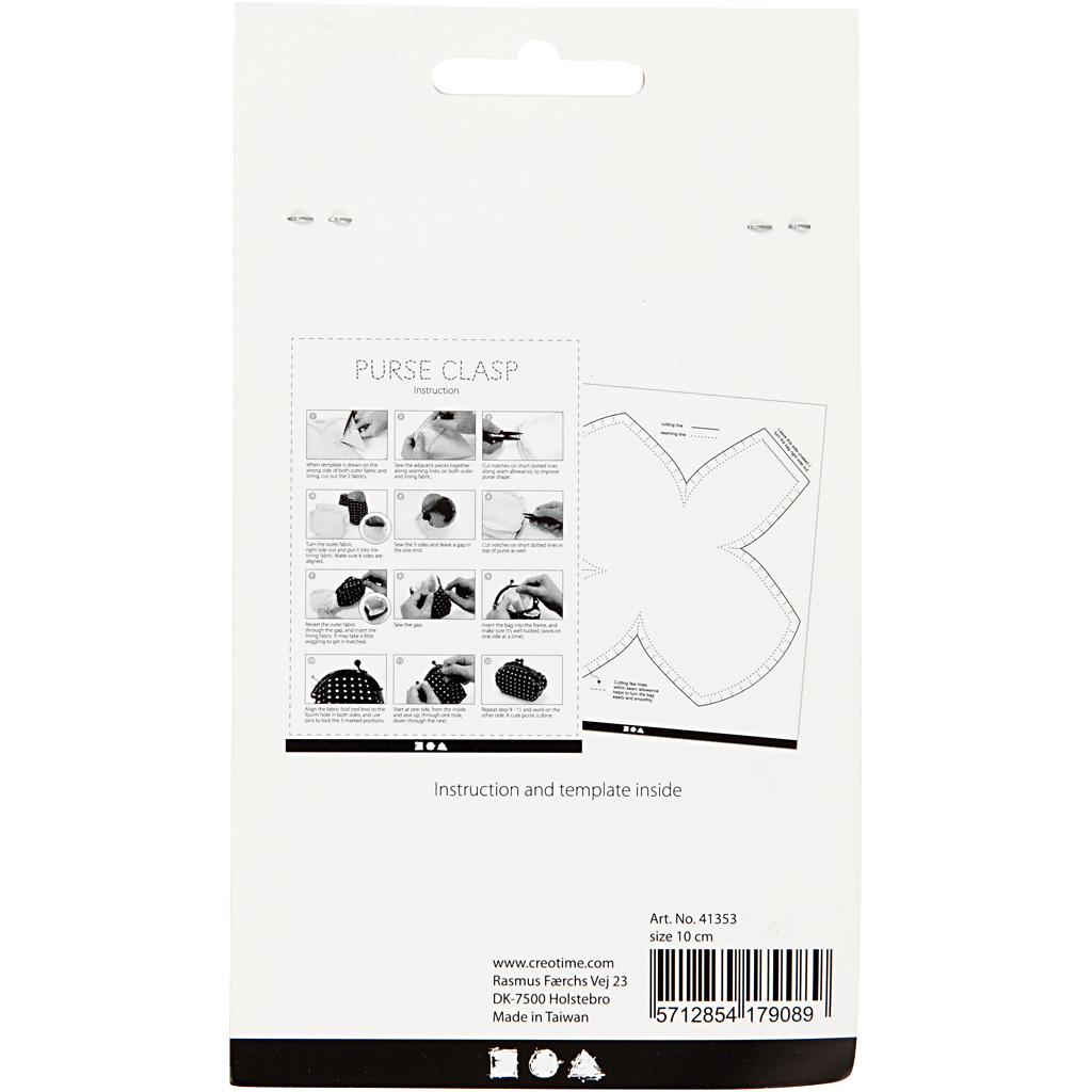 Runder Metallbügel-Verschluss mit Stielkugeln und gelochtem Rahmen zum Annähen an Geldbörsen/kleine Taschen aus Stoff. Mit Vorlage und Anleitung zum Annähen