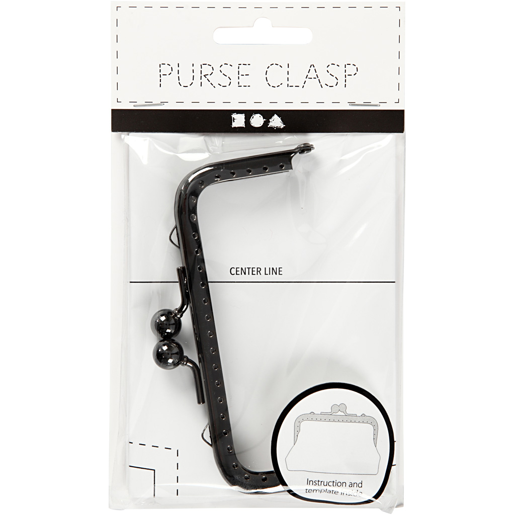 Eckiger Metallbügel-Verschluss mit Stielkugeln und gelochtem Rahmen zum Annähen an Geldbörsen/kleine Taschen aus Stoff. Mit Vorlage und Anleitung zum Annähen