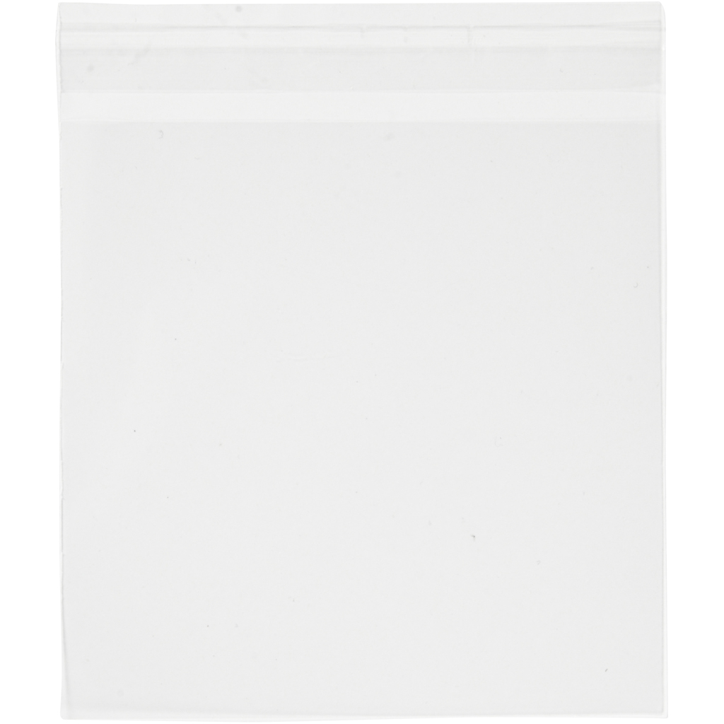 Transparente Cellophanhüllen mit Selbstklebeverschluss. Abbildung zeigt die geschlossene Hülle von außen