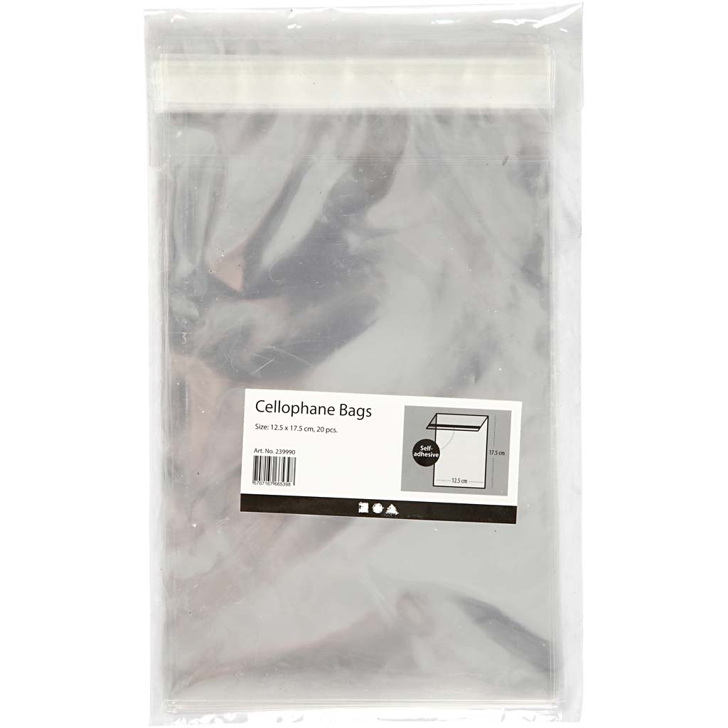 Transparente Cellophanhüllen mit Selbstklebeverschluss. Abbildung zeigt die geschlossene Hülle von außen