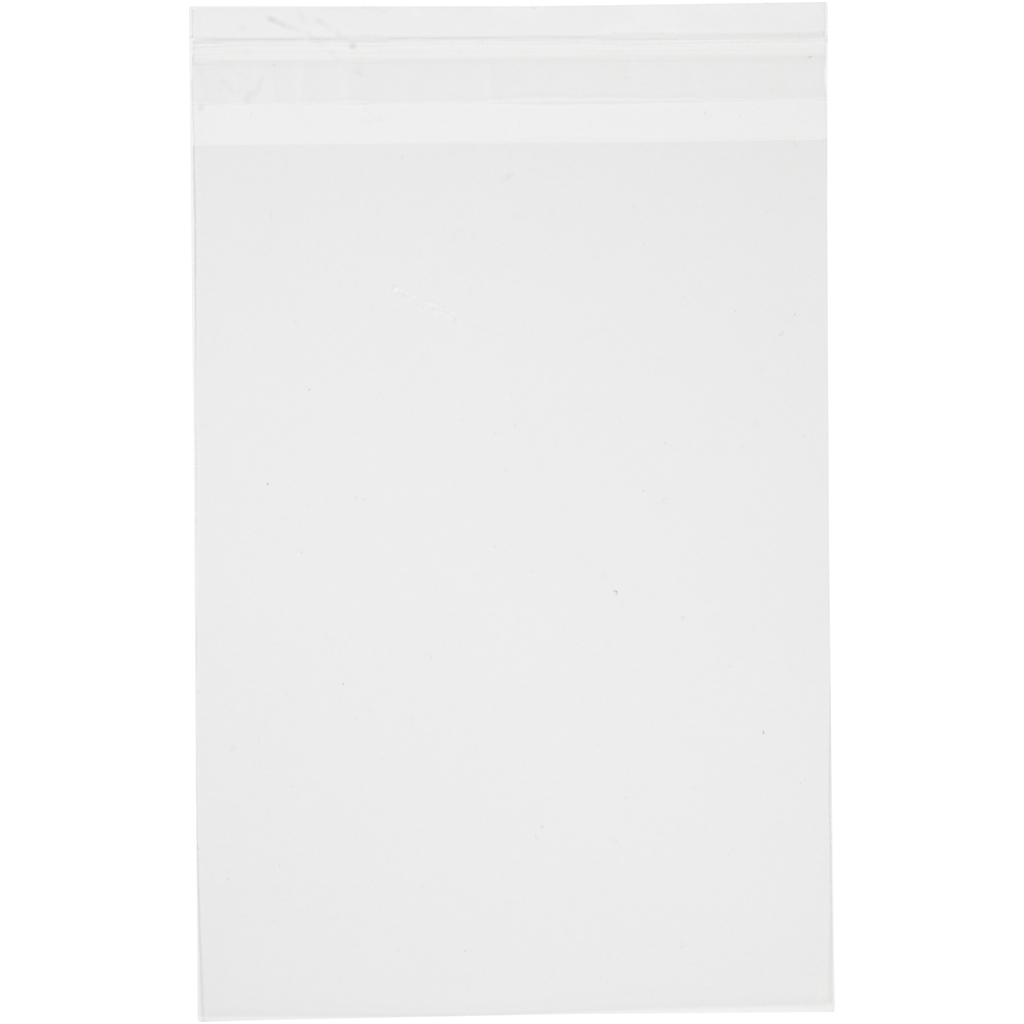 Transparente Cellophanhüllen mit Selbstklebeverschluss. Abbildung zeigt die geschlossene Hülle von außen
