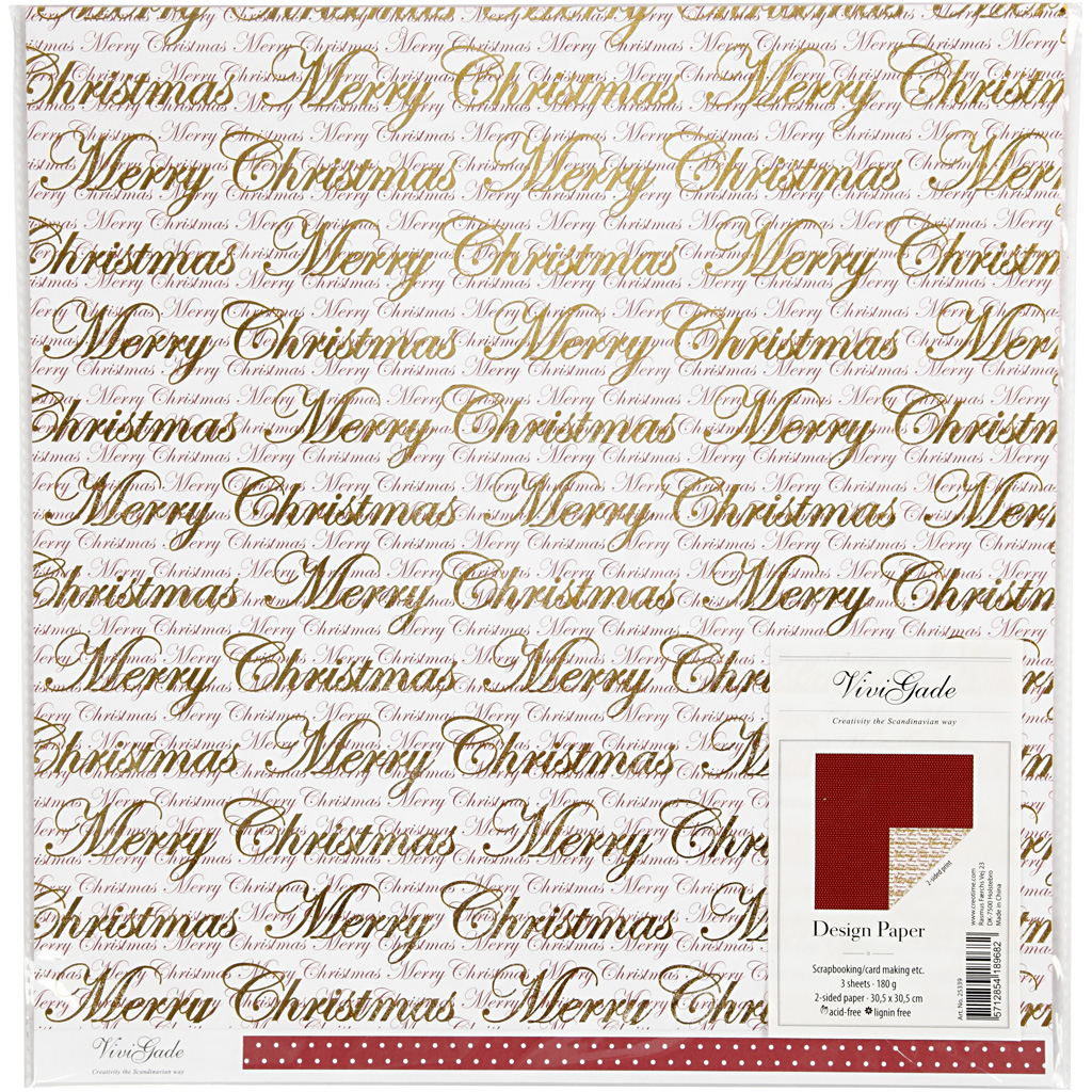Design-Papier, Frohe Weihnachten & Punkte, Blatt 30,5x30,5 cm, 180 g, Gold, 3 Bl./ 1 Pck