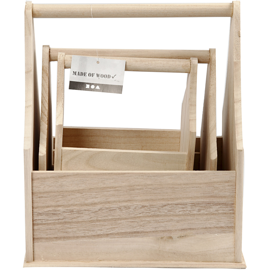 Holz-Flaschenkasten mit Griffstange – Set mit 3 Größen
