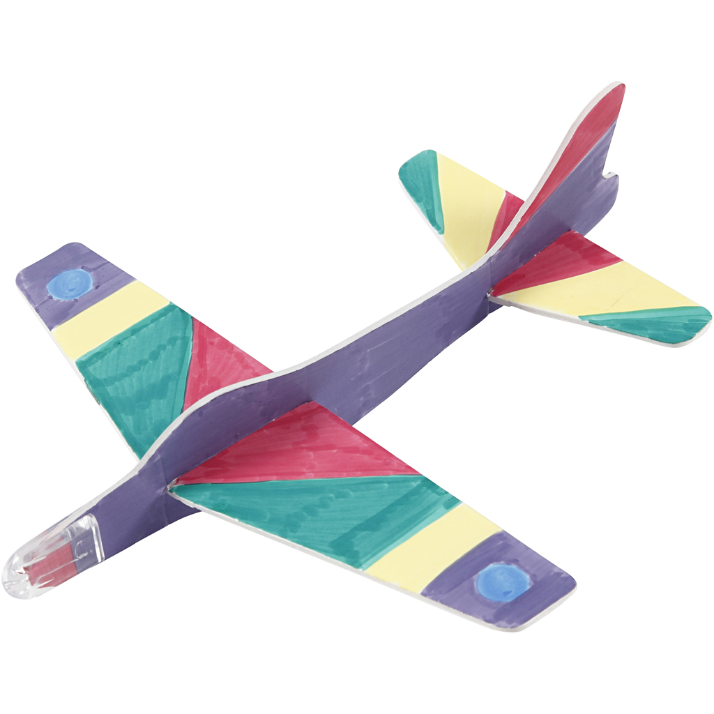 Selbstbau-Flugzeuge aus weißem, dünnen Plastik mit Papieroberfläche zum Bemalen/Verzieren mit Markern, Buntstiften etc