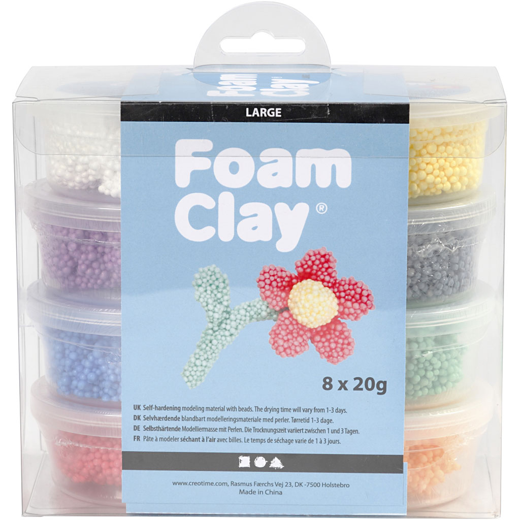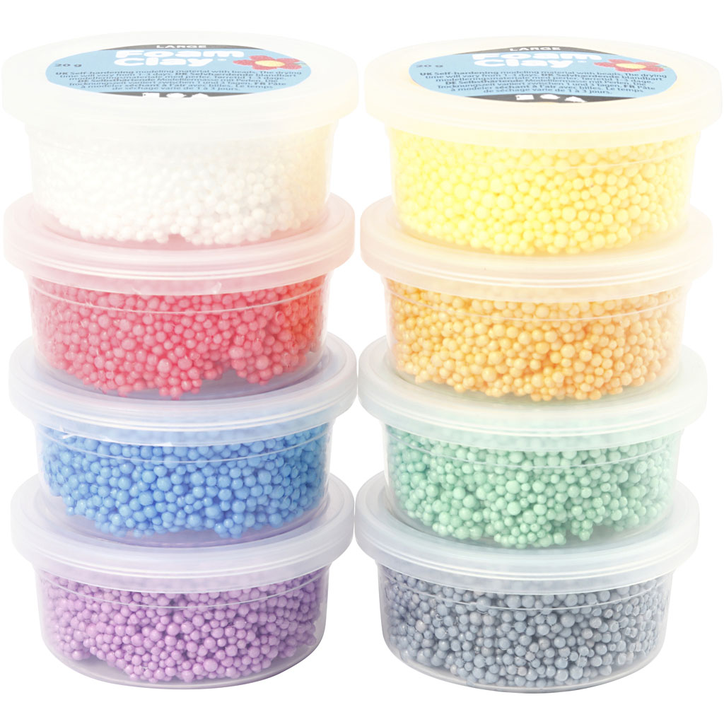 Selbsthärtende Modelliermasse mit großen Perlen zum Modellieren verschiedenster Objekte – mit Foam Clay Large in Kombination mit Foam Clay in anderer Perlengröße lassen sich spannende 3D-Effekte kreieren – Lieferung im praktischen luftdichten Container – immer geschlossen halten und nicht verwendete Masse im Container aufbewahren