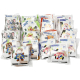 Jedes Set enthält alles, was man zum Basteln einer lustigen Filz-Figur benötigt. Die vorgeschnittenen Filzteile haben gelochte Kanten zum einfachen Zusammennähen. Die Deko-Elemente sind selbstklebend