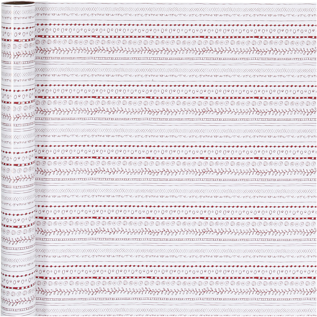 Geschenkpapier, Kritzeleien, B 70 cm, 80 g, Rot, Weiß, 4 m/ 1 Rolle