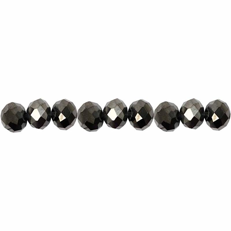 Glasschliffperlen, Größe 5x6 mm, Lochgröße 1 mm, Schwarz metallic, 100 Stk/ 1 Pck