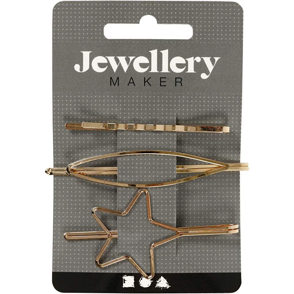 Haarspange, L 44 mm, B 36 mm, Vergoldet, 2 Stk/ 1 Pck