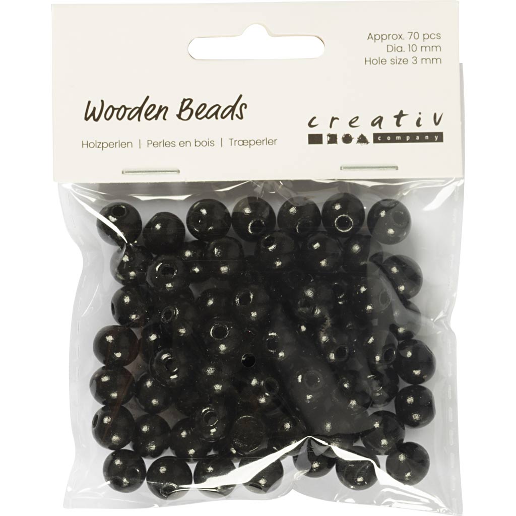 Holzperlen, D 10 mm, Lochgröße 3 mm, ca. 70 Stk, Schwarz, 20 g/ 1 Pck
