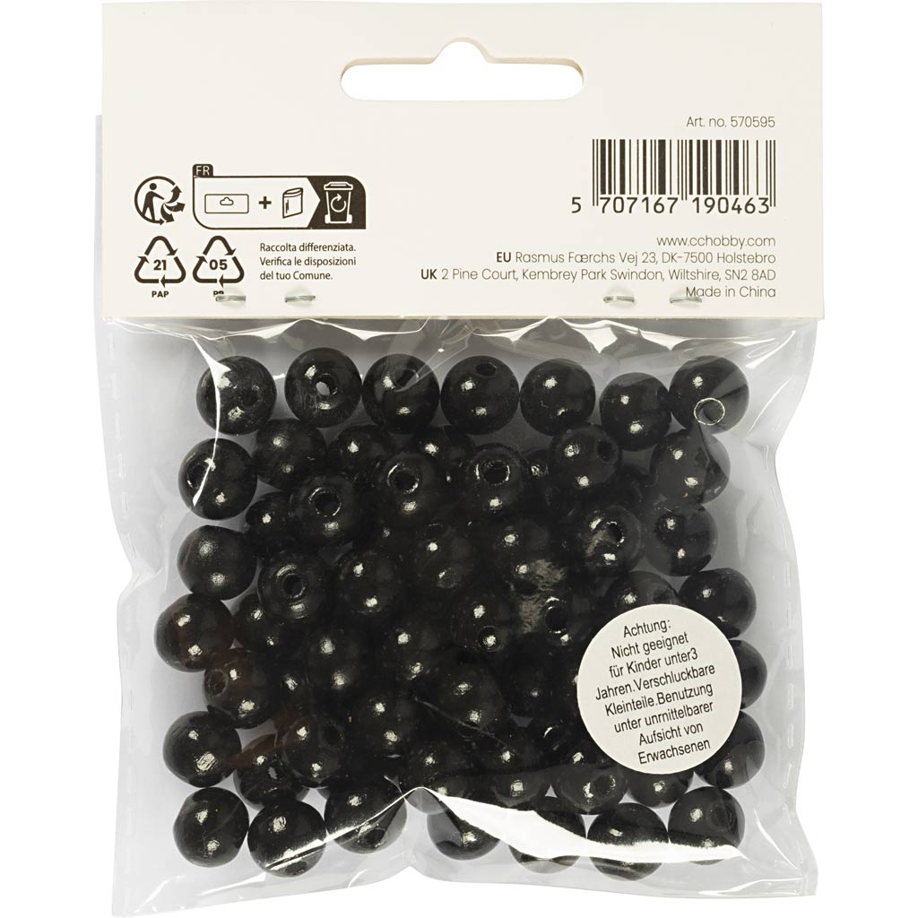 Holzperlen, D 10 mm, Lochgröße 3 mm, ca. 70 Stk, Schwarz, 20 g/ 1 Pck – Bild 3