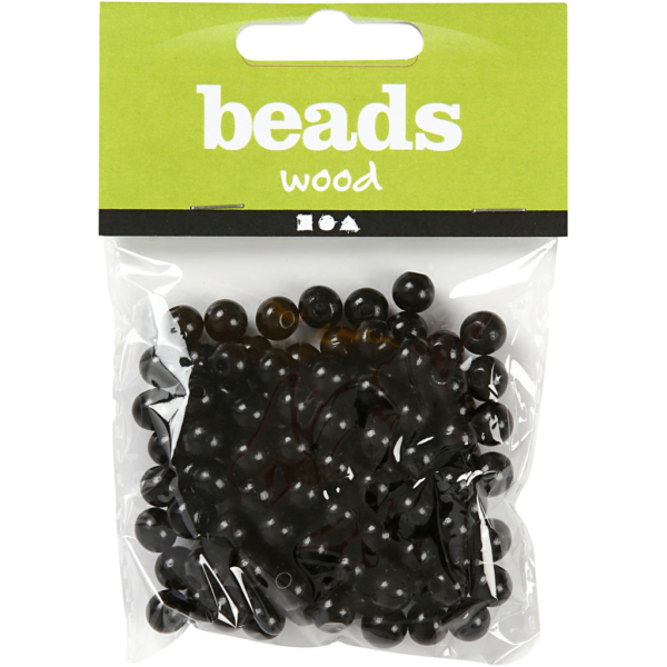 Holzperlen, D 8 mm, Lochgröße 2 mm, ca. 80 Stk, Schwarz, 15 g/ 1 Pck