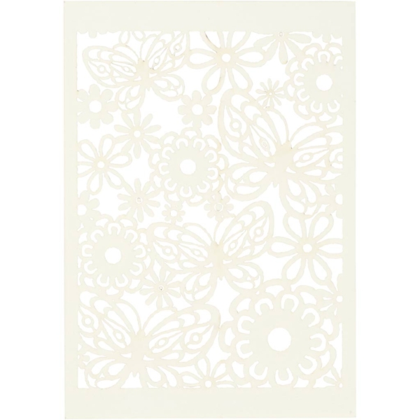 Karton mit feinteiligem, mit Laser gestanztem Spitzenmuster. Aufgrund der Herstellungsmethode können dunkle Schatten auftreten