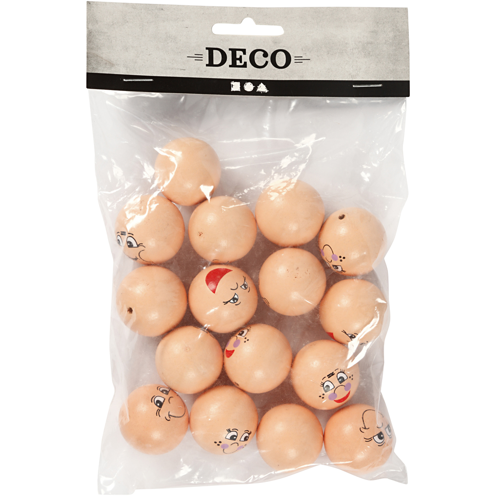 Holzperlen mit halbgebohrtem Loch – hautfarben – mit 8 verschiedenen lustigen Gesichtern zu je 2 Stck