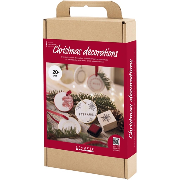 Mit diesem Set können Sie aus selbsthärtendem Ton Ihren eigenen Weihnachtsschmuck zum Aufhängen herstellen. Das Set enthält alle benötigten Materialien und Anleitungen