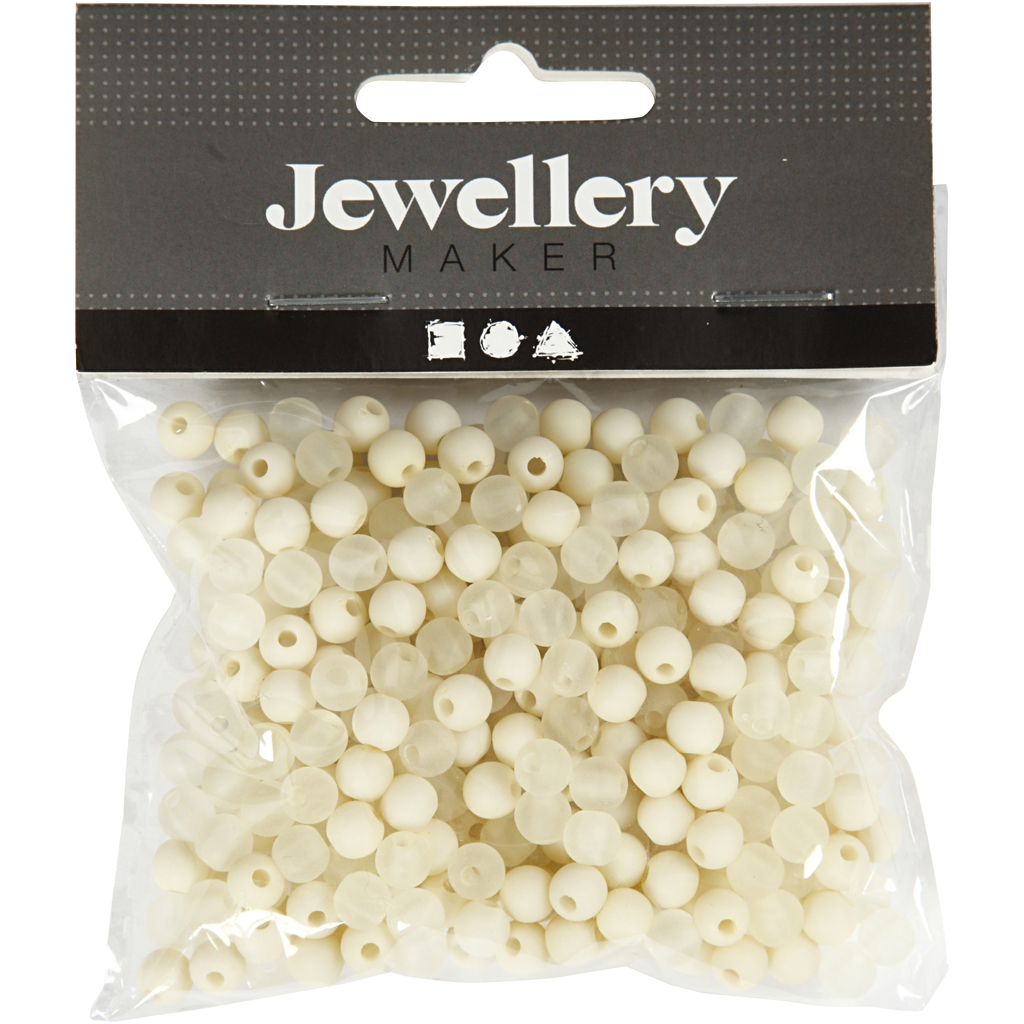 Runde Kunststoffperlen mit matter Oberfläche – Mix aus halbtransparenten und einfarbigen Perlen mit matter Oberfläche