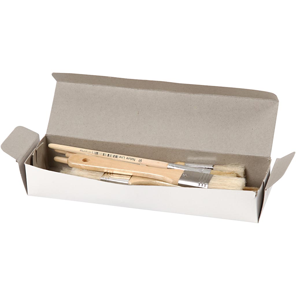 Flach, mit hellen Schweineborsten, kurzer Holzgriff – je 2 Stck. in 5 Größen