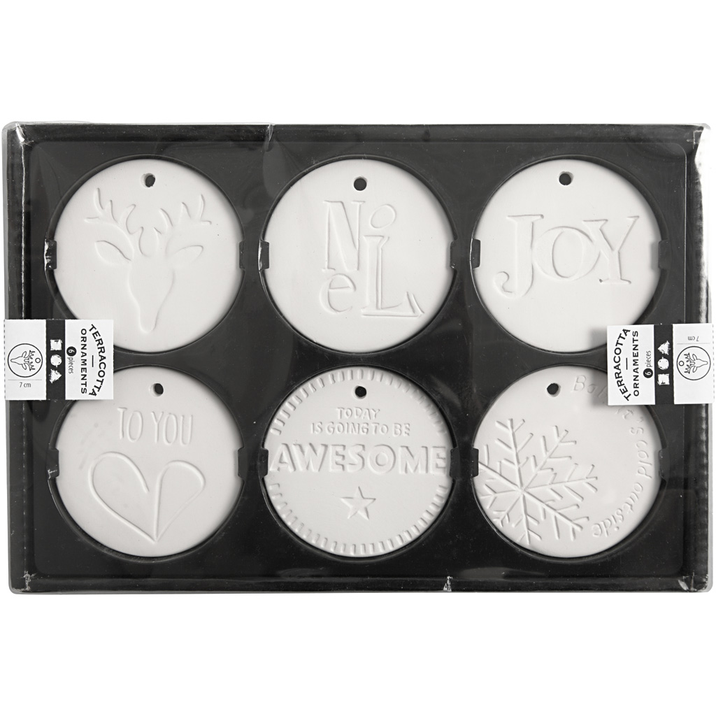 Zier-Medaillons aus weißer Terracotta mit Loch zum Aufhängen
