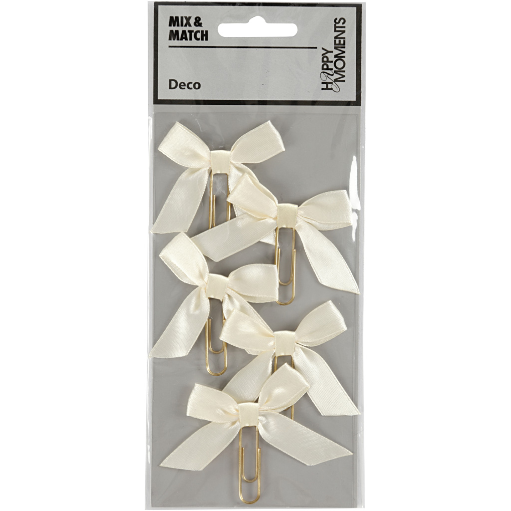 Vergoldete Metallklammer mit Schleife aus Satinband – als effektvolle Deko auf Karten, Einladungen, Geschenken, Scrapbooks, Planern etc