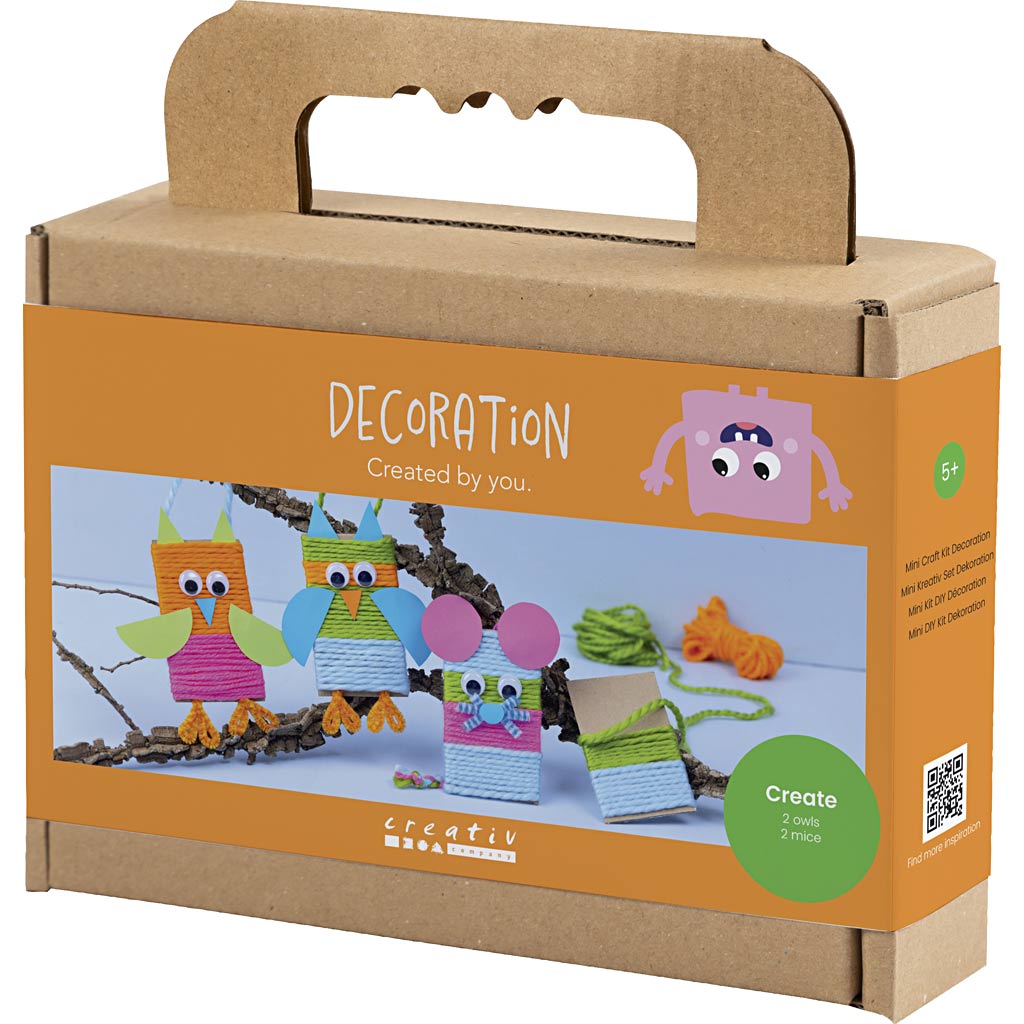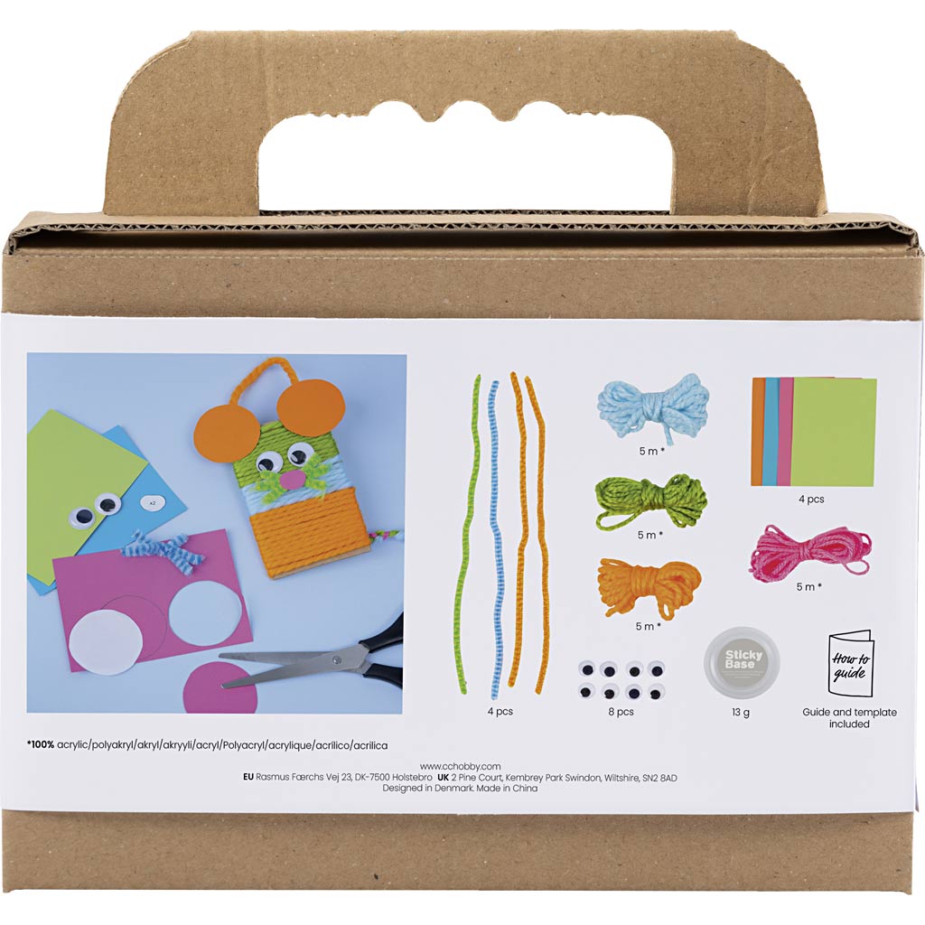 Mit unserer Creativity in a Box können Sie und die Kinder die niedlichsten Tiere aus Garn und Karton basteln. Enthält Materialien für zwei Eulen und zwei Mäuse sowie alle Anleitungen, die man dafür benötigt