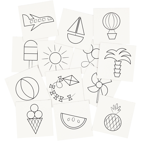 Materialset zum Bemalen bedruckter Memo Karten aus festem Karton mit Markern – inkl. Inspirationen