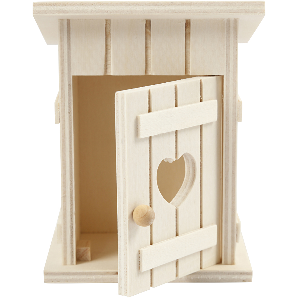Toilettenhäuschen aus Holz – mit vielen feinen Details sowie Türe zum Öffnen und Schließen