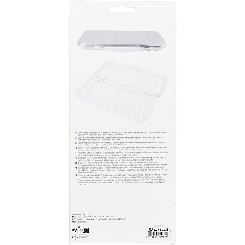 Praktische Faltpalette mit Klickverschluss, mit der die Farbe frisch und gebrauchsfertig bleibt, ob zu Hause oder unterwegs. Perfekt für Wasserfarben, Gouache-, Acryl- und Ölfarben.