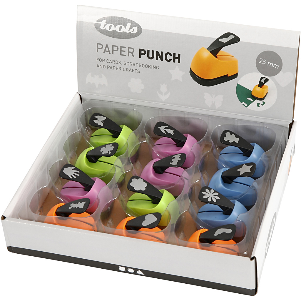 Motivstanzer im Karton-Display, Alltägliches, Größe 25 mm, 12 Stk/ 1 Pck