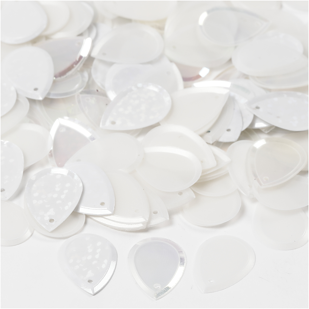 Pailletten, Regentropfen, Größe 14x19 mm, Weiß, 50 g/ 1 Pck