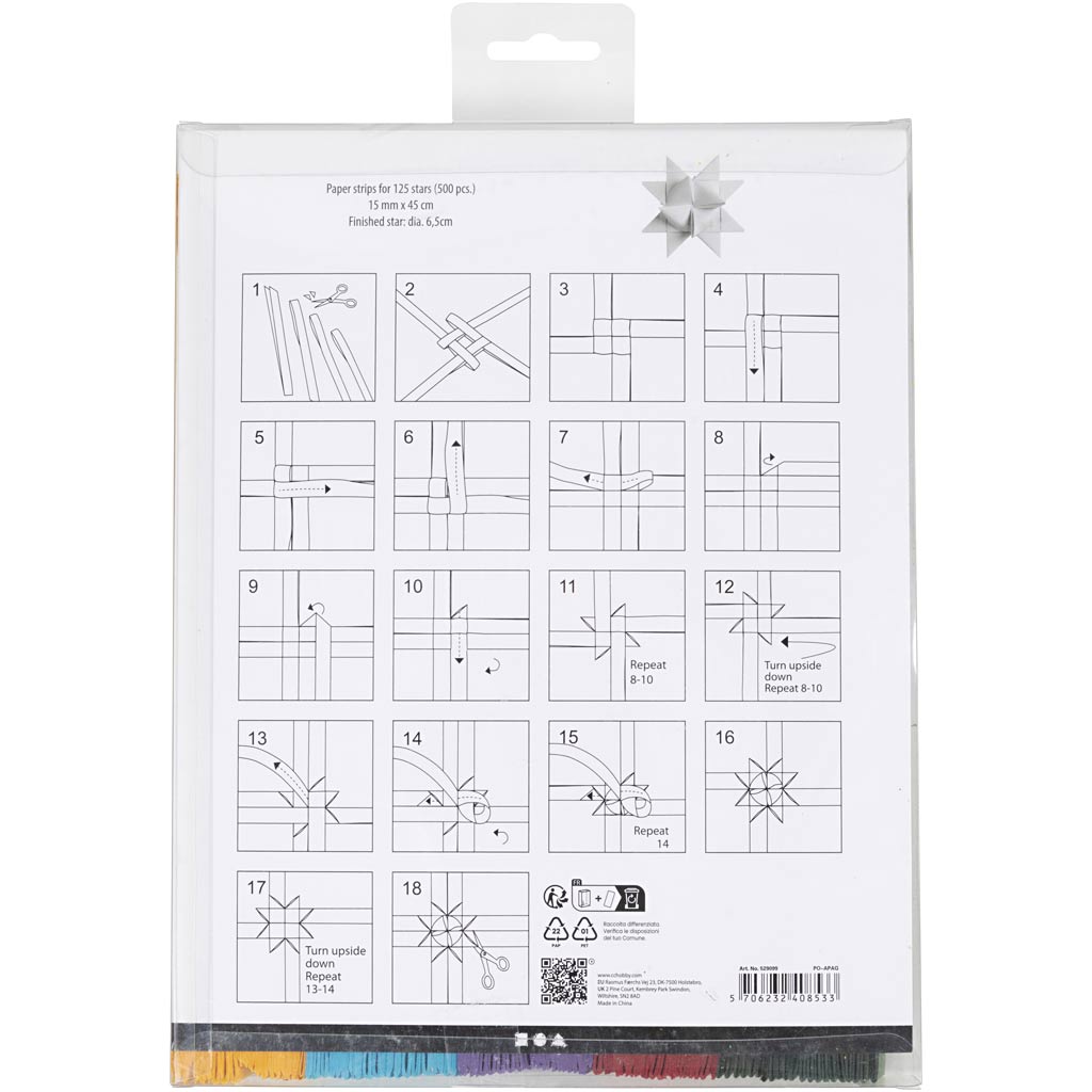 Traditionelle Papierstreifen für Faltsterne – der angegebene Durchmesser entspricht der Größe des fertigen Sterns