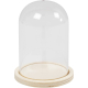 Runde Plexiglasglocke mit losem Holzsockel, in der Sie Ihre kreativen Arbeiten präsentieren können