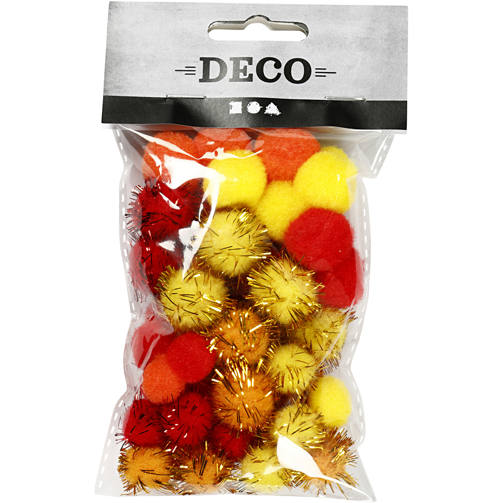 Pompons, D 15+20 mm, Orange, Rot, Gelb, 48 Stk/ 1 Pck
