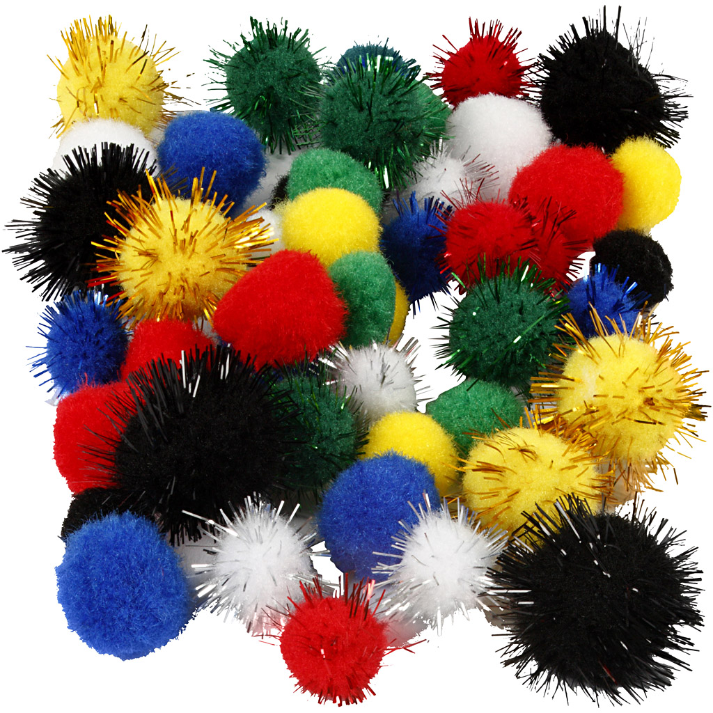 Pompons, D 15+20 mm, Sortierte Farben, 48 sort./ 1 PckPompons, D 5-40 mm, ca. 720 Stk, Sortierte Farben, 200 g/ 1 Pck