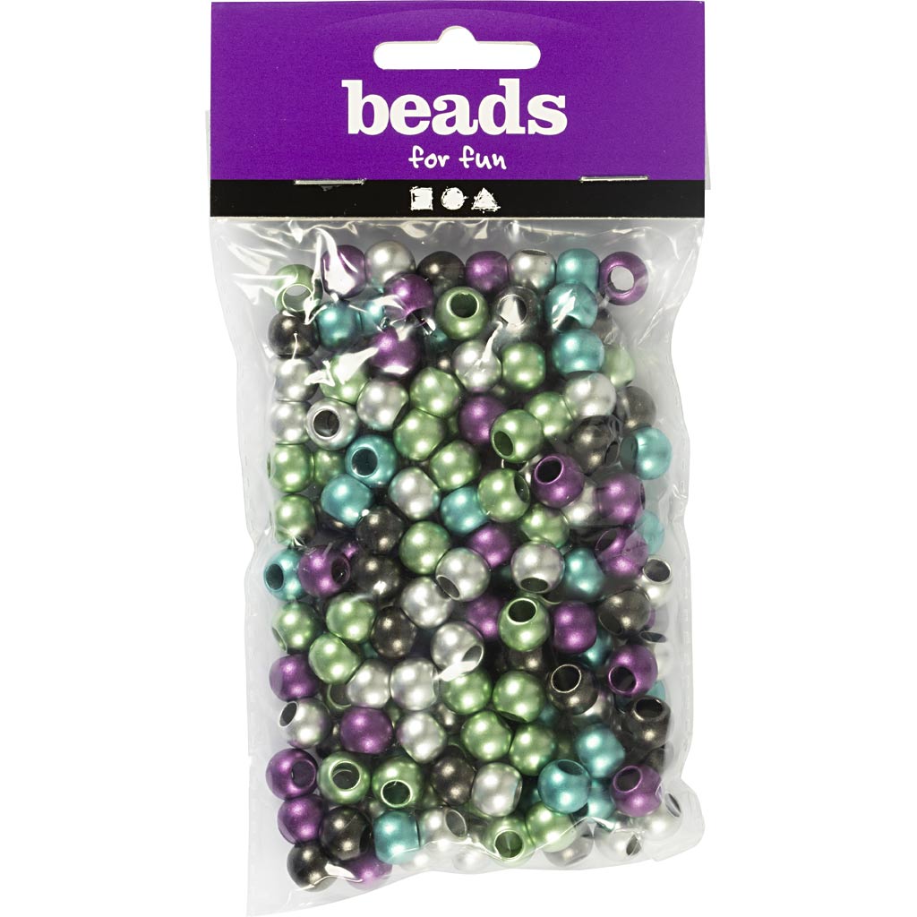 Beliebte, nicht transparente Kunststoffperlen in zahlreichen Metallic-Farben – mit großem Loch für einfaches Auffädeln