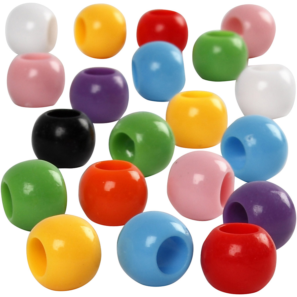 Beliebte, nicht transparente Kunststoffperlen in zahlreichen Metallic-Farben – mit großem Loch für einfaches Auffädeln
