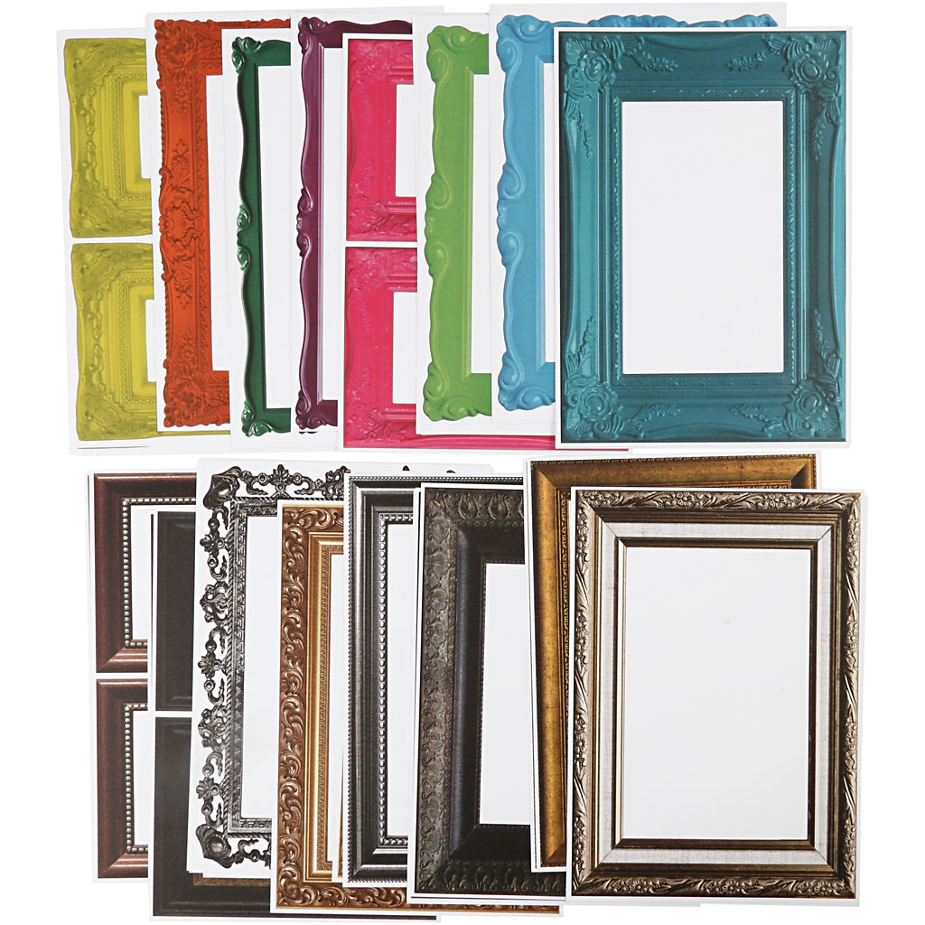 Rechteckige Rahmen aus kräftigem Karton (230 g). Das Innenmaß variiert wegen der verschiedenen Rahmendicken
