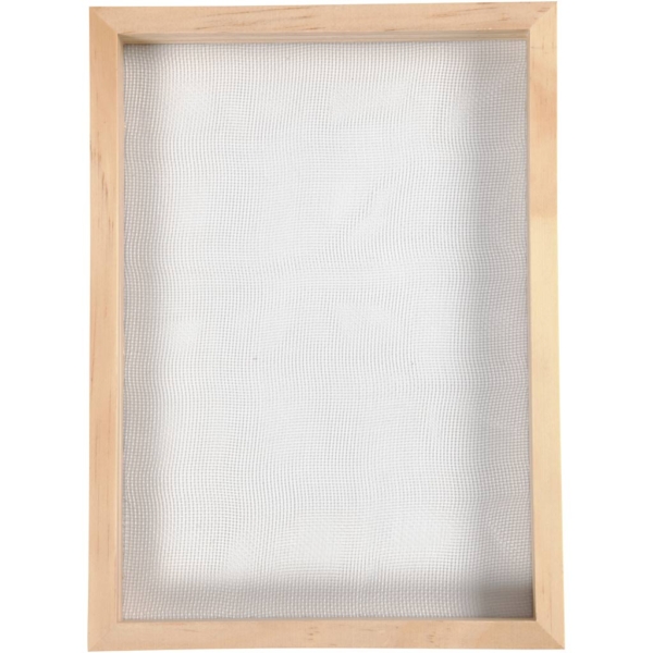 Lackierte einfache Rahmenform zur Herstellung von handgeschöpftem Papier. Diese Rahmenform ermöglicht die Anfertigung unregelmäßiger, wie gerissen aussehender Papierkanten
